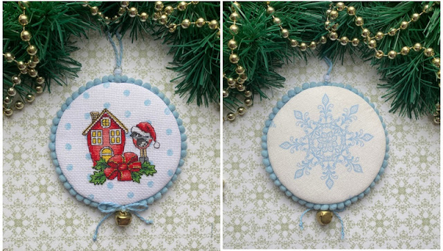Эти дизайны я увидела в журнале Формула рукоделия (апрель 2011г). Дизайнер Лейсли Тиер предлагала оформить вышивки в открытки, но я решила сделать новогодние игрушки.